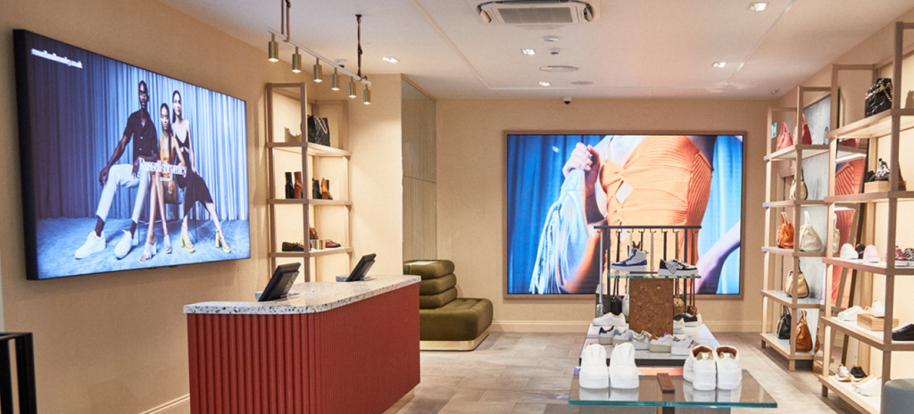 A nationwide digital signage and LED installation rollout for Russell & Bromley, spanning more than 40 UK stores. From a single proof of concept to a fully managed display estate covering in-window screens and large-format LED walls, delivered and maintained across the brand’s entire high-street presence.